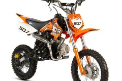 Modele 607M to idealne pojazdy dla nastolatków rozpoczynających swoją przygodę z motocyklami terenowymi. Są one zestawione na kołach 14" z przodu i 12" z tyłu. Prowadnica zapewnia odpowiednie prowadzenie łańcucha. Hydrauliczne hamulce z przodu i z tyłu dadzą pewność hamowania w każdych warunkach.