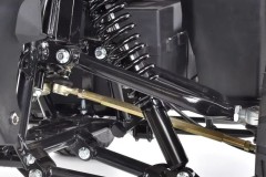 System zawieszenia quada jest zaprojektowany z myślą o maksymalnym komforcie i stabilności. Amortyzatory posiadają wielostopniową regulację sztywności, co pozwala na dostosowanie ich do indywidualnych preferencji użytkownika oraz warunków terenowych. Duże, terenowe opony z chropowatym bieżnikiem zapewniają doskonałą przyczepność i trakcję na różnych nawierzchniach, co czyni go idealnym wyborem do jazdy po nierównym terenie.