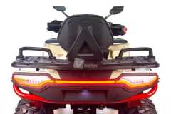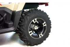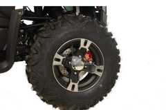 Pojazd wyposażony jest w hydrauliczne tarczowe hamulce zarówno z przodu, jak i z tyłu, co zapewnia skuteczność hamowania w każdych warunkach. Wytrzymałe zawieszenie oraz 12-calowe koła z bieżnikiem dostosowanym do różnych nawierzchni gwarantują doskonałą przyczepność i komfort jazdy.Wyposażenie