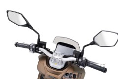 Nie zapomnieliśmy o Twoim komforcie! Skuter posiada regulowaną przednią szybę, dzięki której możesz dostosować jej wysokość do swoich preferencji. Zminimalizujesz opór wiatru i zyskasz lepszą aerodynamikę podczas jazdy.