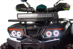 Quad w charakterystyce przeprawowej wyposażony jest w dwa bagażniki stalowe umieszczone z przodu i z tyłu pojazdu. Bagażniki pokryte są dedykowaną nakładką z trwałego tworzywa. Obszerna powierzchnia ładowna pozwoli Wam zabrać wiele niezbędnych rzeczy na wyprawę w teren